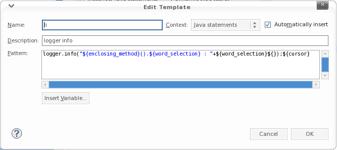 logger.info("${enclosing_method}().${word_selection} : " + ${word_selection}${});${cursor}